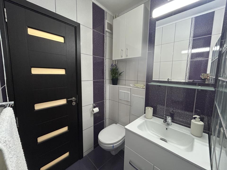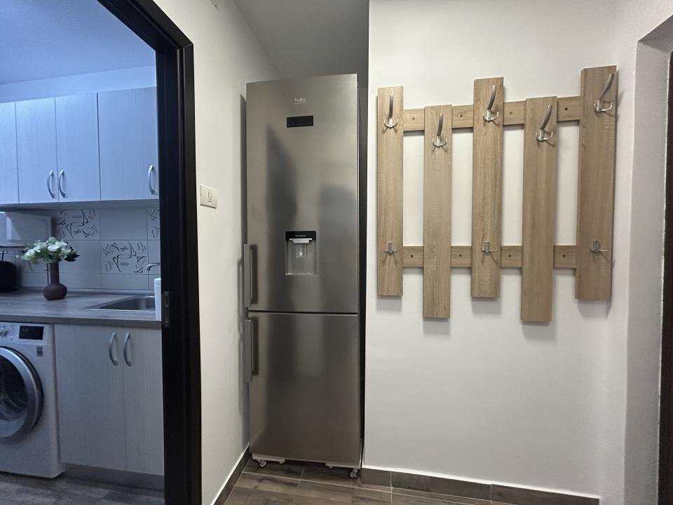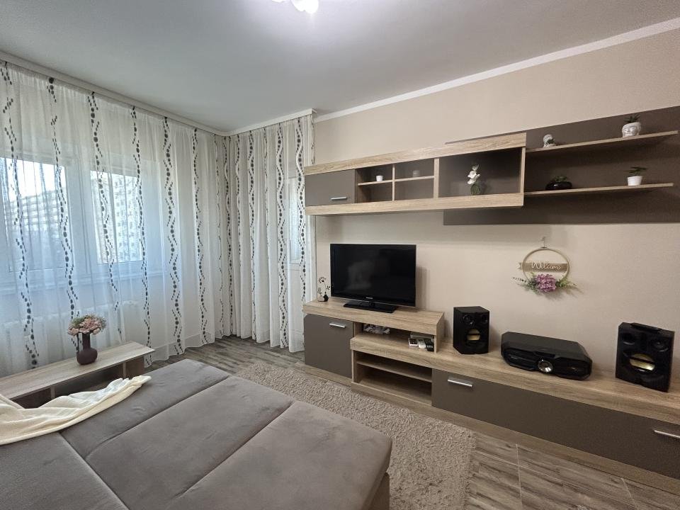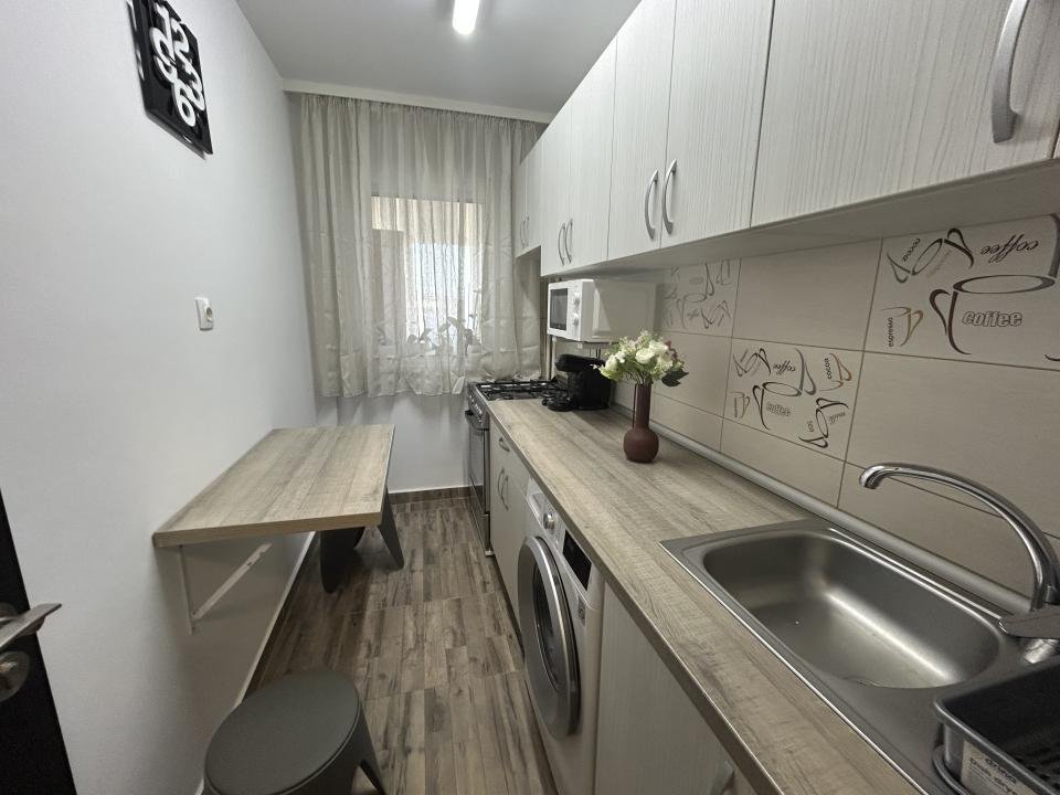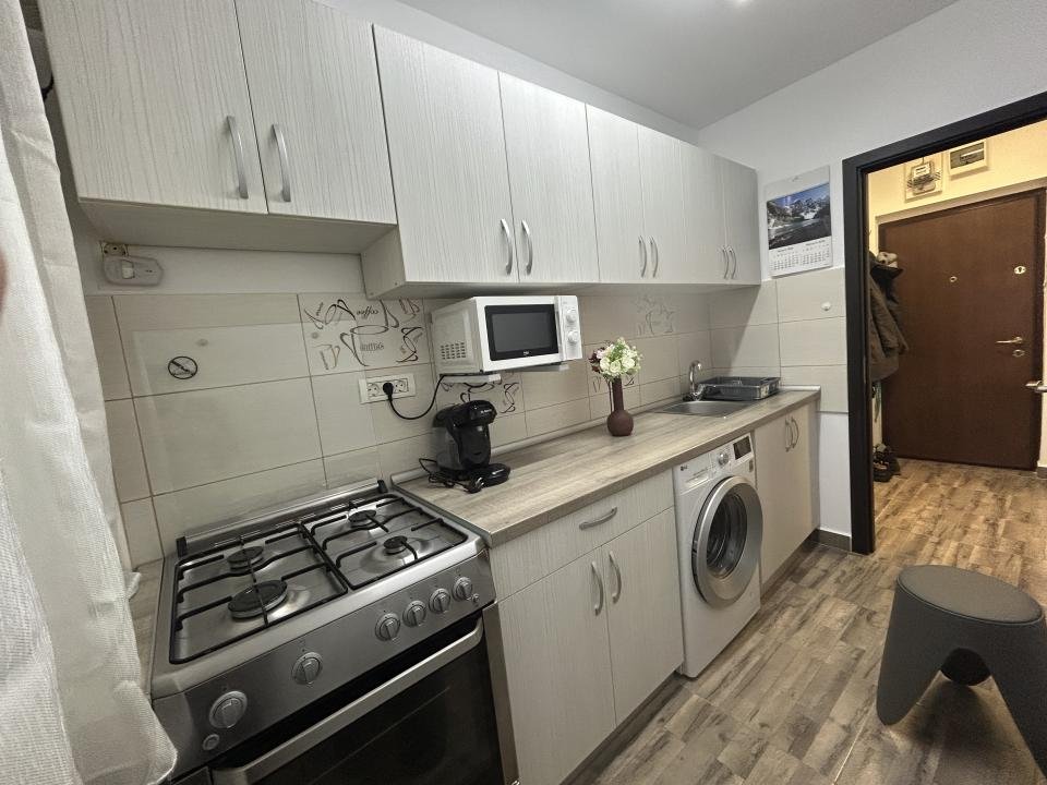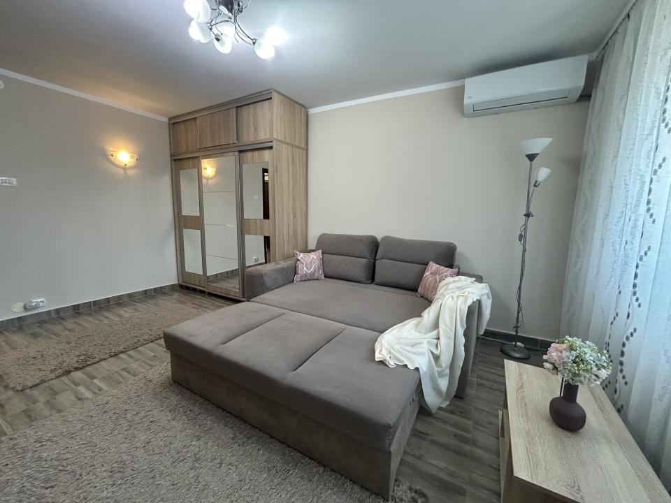 Proaspăt zugrăvita în 2026, garsoniera este curata, luminoasa și mobilata modern, complet utiliata cu electrocasnice în stare foarte bună. Are si aer condiționat pentru confort pe timpul verii precum și jaluzele orizontale, care oferă intimitate și control al luminii naturale.