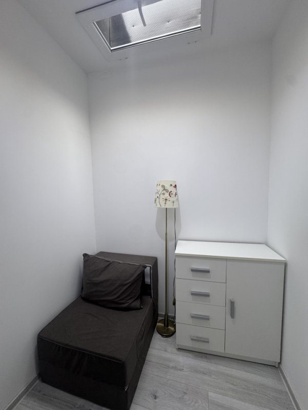 Garsoniera boema de la mansardă are și o camaruta pentru citit sau chiar pentru acomodarea unui musafir, existând un fotoliu ce se poate extinde.