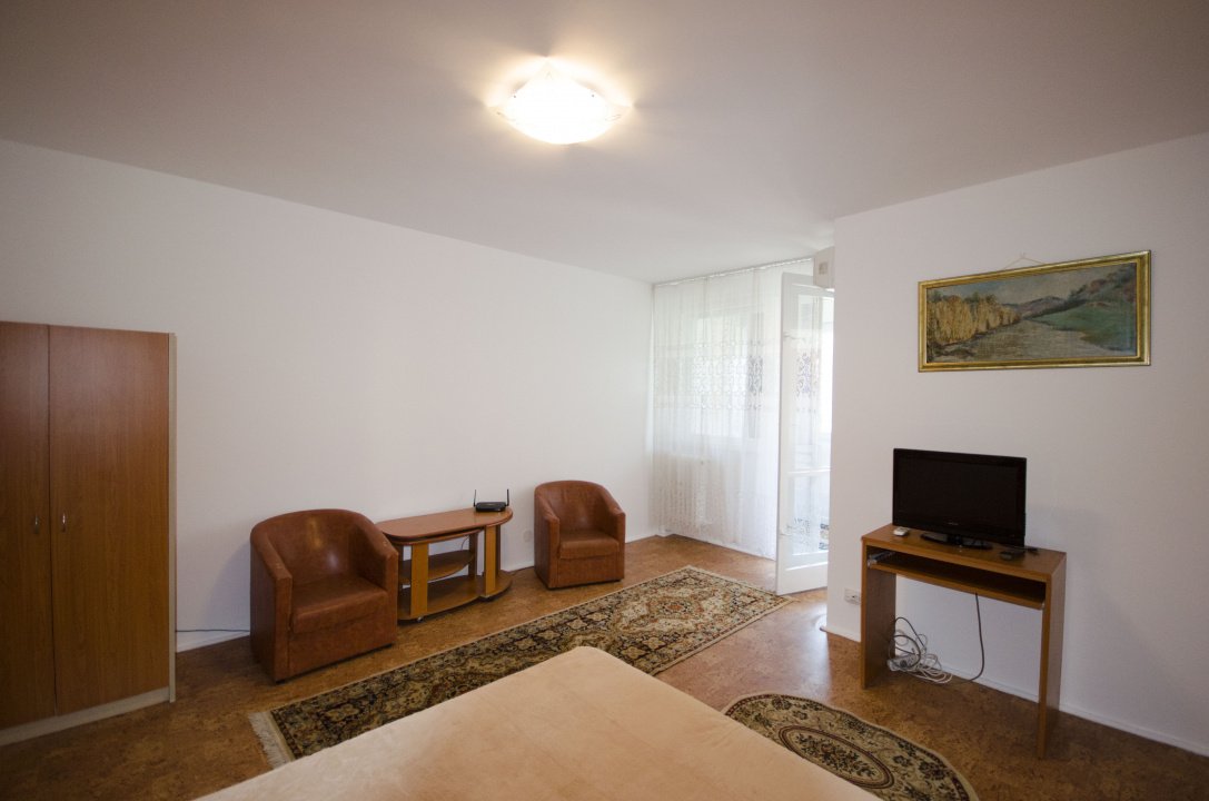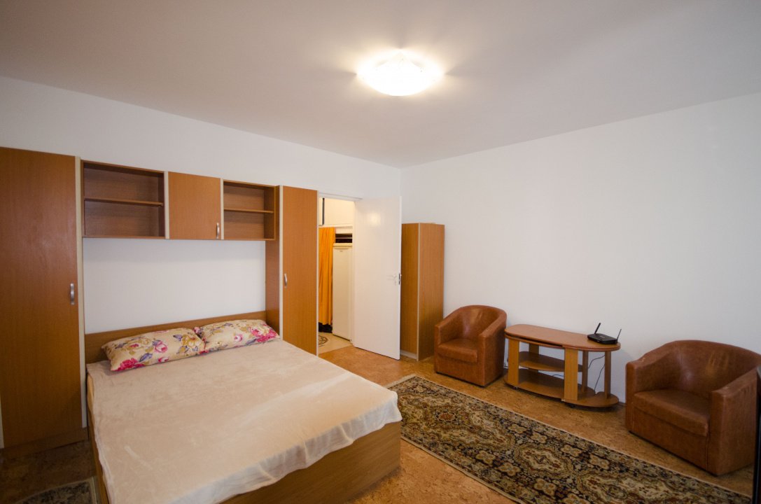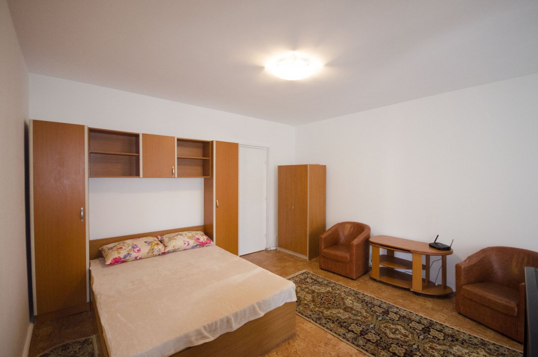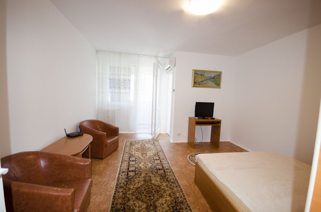 Garsoniera dispune de un spațiu bine compartimentat, luminos și aerisit, oferind un ambient confortabil și funcțional. Mobilierul este modern și practic, iar dotările includ electrocasnicele necesare pentru un trai confortabil.