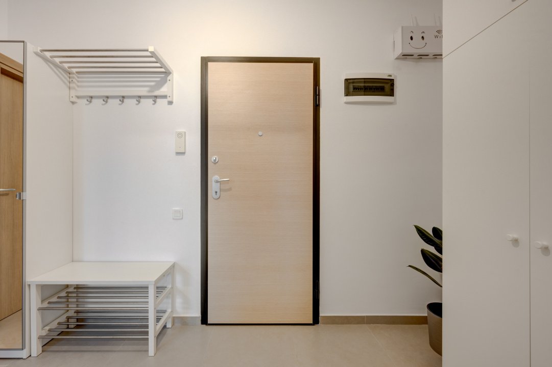 Garsoniera este situata la etajul 4/9, intr-un imobil construit in anul 2018, are o compartimentare decomandata cu o suprafata de 37,28 mp, din care 35,18 mp utili si balcon 2,10 mp. Toate incaperile sunt separate si bucataria este inchisa. Holul de la intrare este amenajat cu spatii pentru depozitare, cuier, pantofar si un dulap care mascheaza masina de spalat rufe.