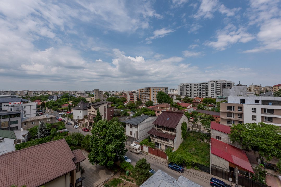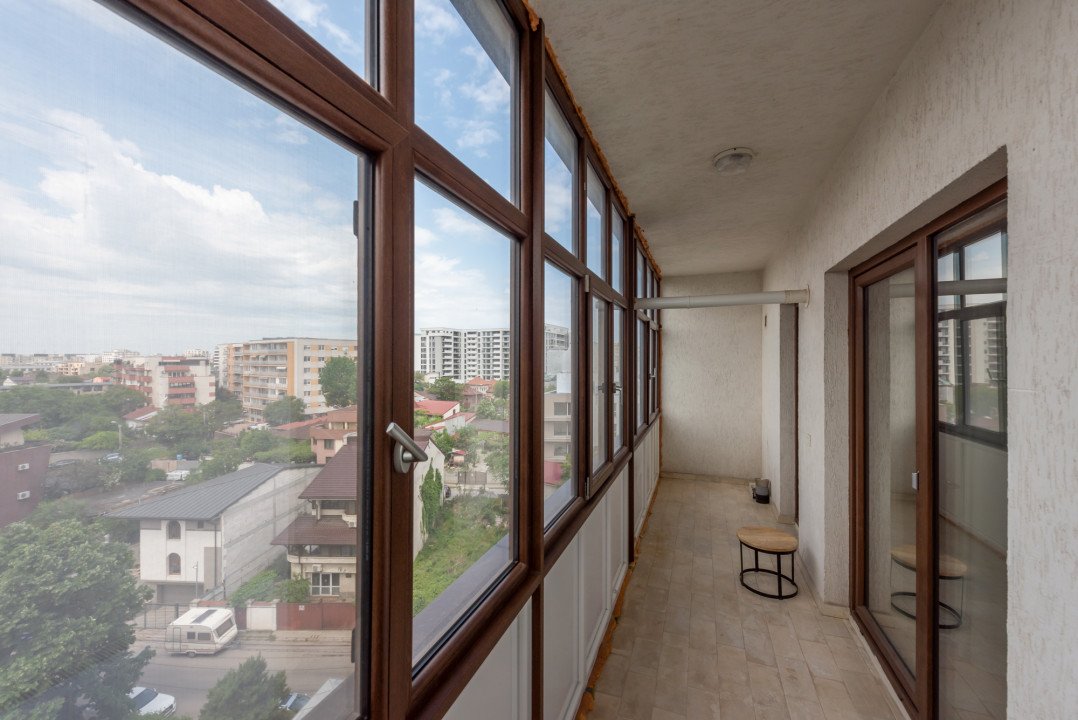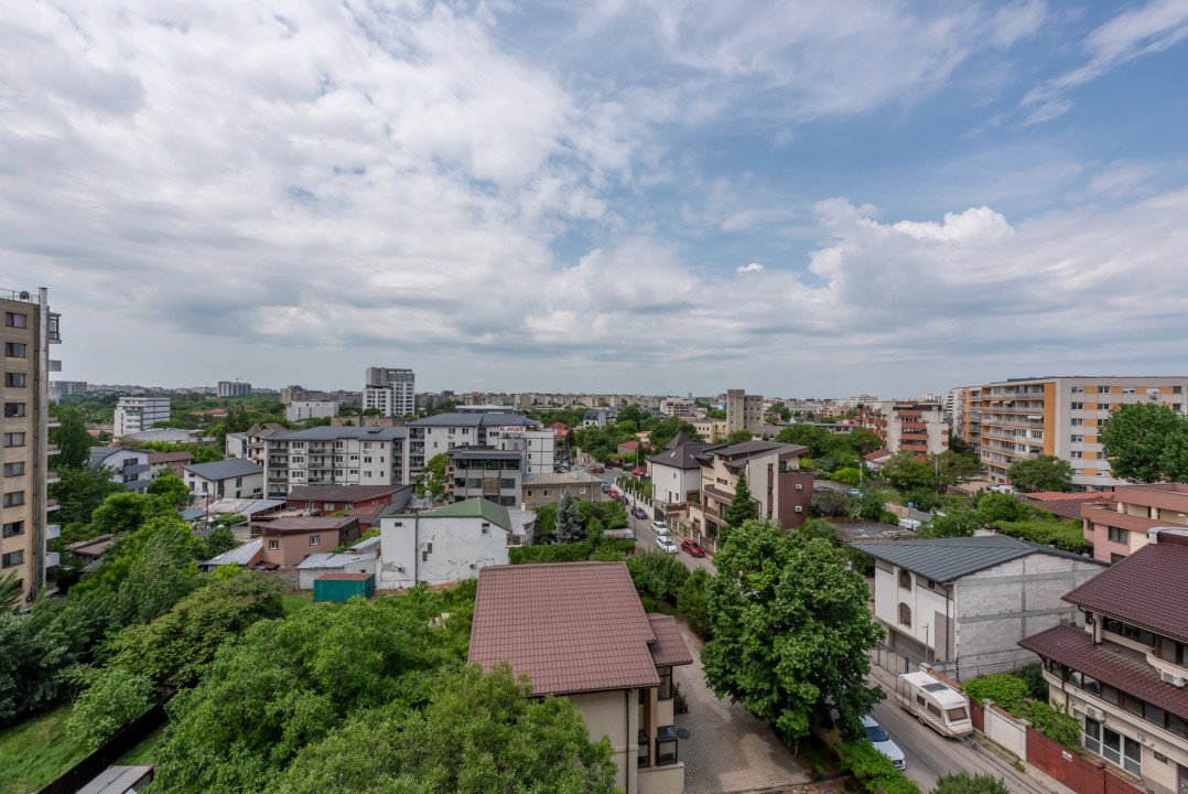 Studio-ul este situat la etajul 6/10 si are o suprafata generoasa de 57,51 mp, din care 48,7mp sunt utili iar terasa in suprafata de 8,81 mp a fost inchisa recent cu ferestre Pvc cu geam termopan. Vederea este libera, neobturata, spre zona de case.