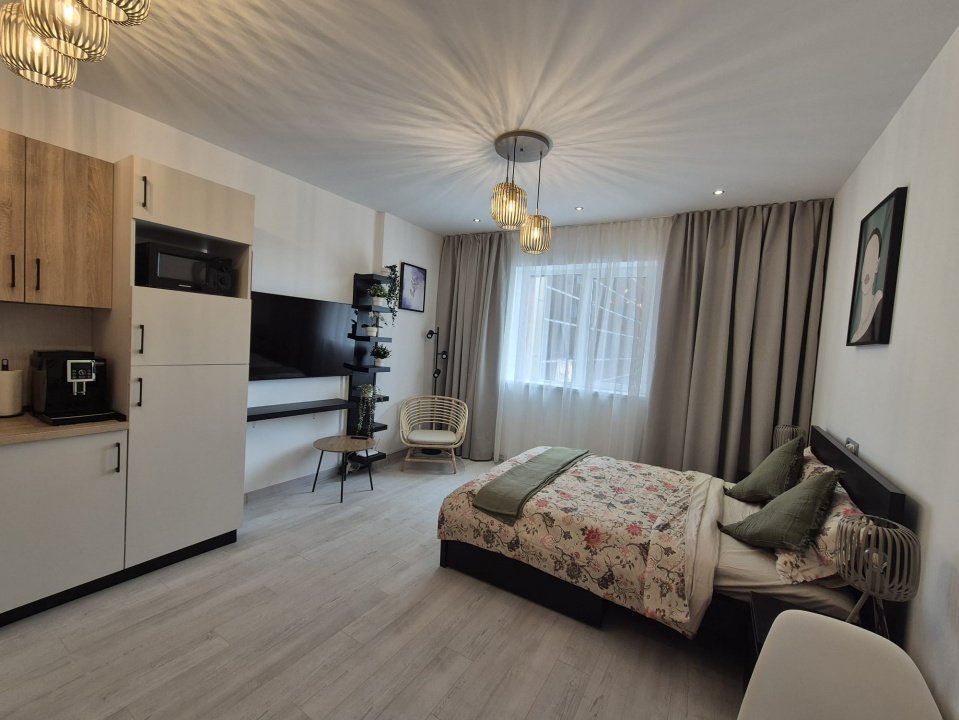 Imaginează-ți diminețile cu multă lumină naturală, într-un spațiu gândit pentru liniște și bună dispoziție. Această garsonieră primitoare, situată la etajul 5 al complexului Rin Grand Hotel, îmbină stilul scandinav cu funcționalitatea modernă, oferindu-ți tot ce ai nevoie pentru a te muta imediat.