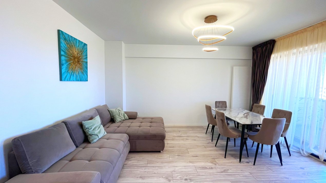 Cu o suprafață utilă de 62 mp, apartamentul este amplasat la etajul 5 din 10 într-un bloc nou construit, beneficiind de lumină naturală din plin și de o compartimentare eficientă, gândită pentru confortul locatarilor.