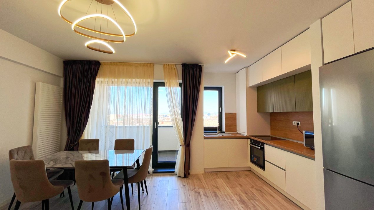 Vă propunem spre închiriere un apartament modern cu 2 camere, tip studio, open-space, situat într-o zonă liniștită și apreciată din cartierul Noua, pe strada Nucului, în cadrul complexului rezidențial Transilvania Residence. Proprietatea se remarcă prin spațiul generos, finisajele moderne și priveliștea panoramică deosebită, oferind un ambient ideal pentru un stil de viață confortabil și relaxant.