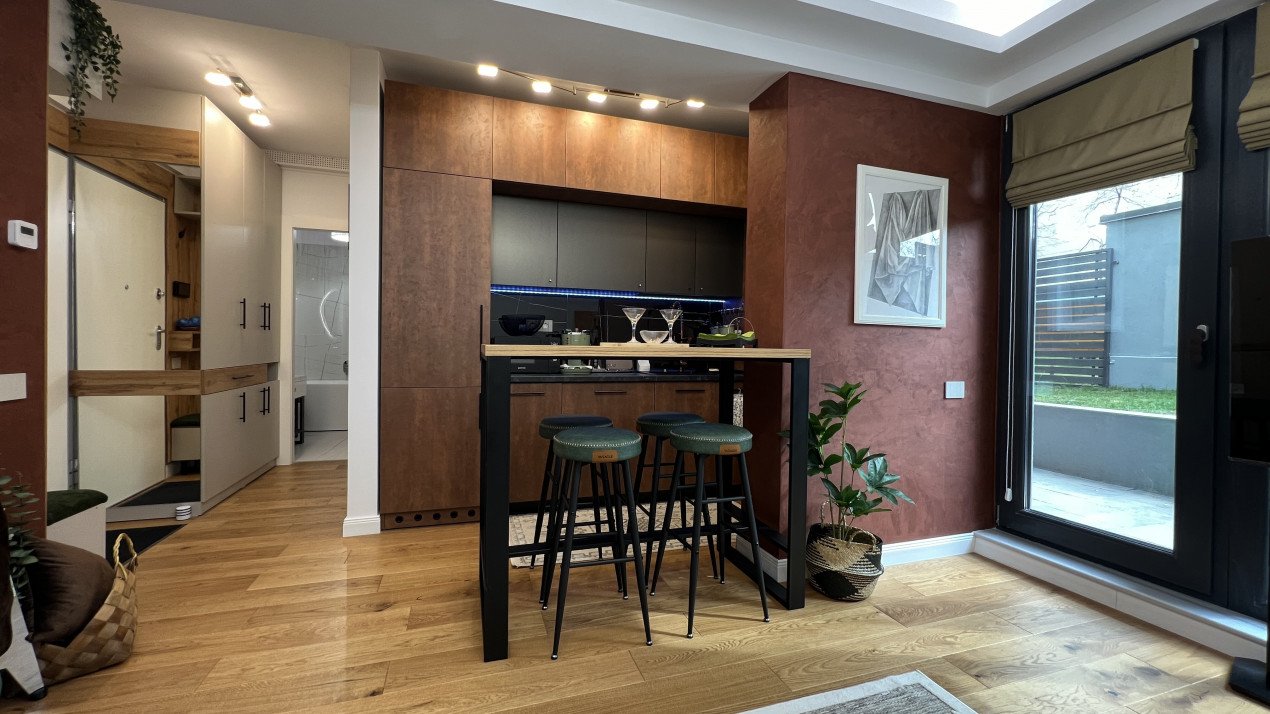 Avem de inchiriat un apartament cu terasa si gradina proprie, situat la parter. Este un apartament mobilat si utilat complet, complet: iti aduci doar hainele !!! Te vei bucura de viata si de liniste, vei putea savura o cafea pe terasa. Daca vrei sa iesi in oras esti la 10 minute de mers pe jos de Centrul Vechi, la 15-20 minute de Parcul Cismigiu sau la 300m de Palatul Parlamentului si Piata Constitutiei ori 700m pana la Metrou Unirii.