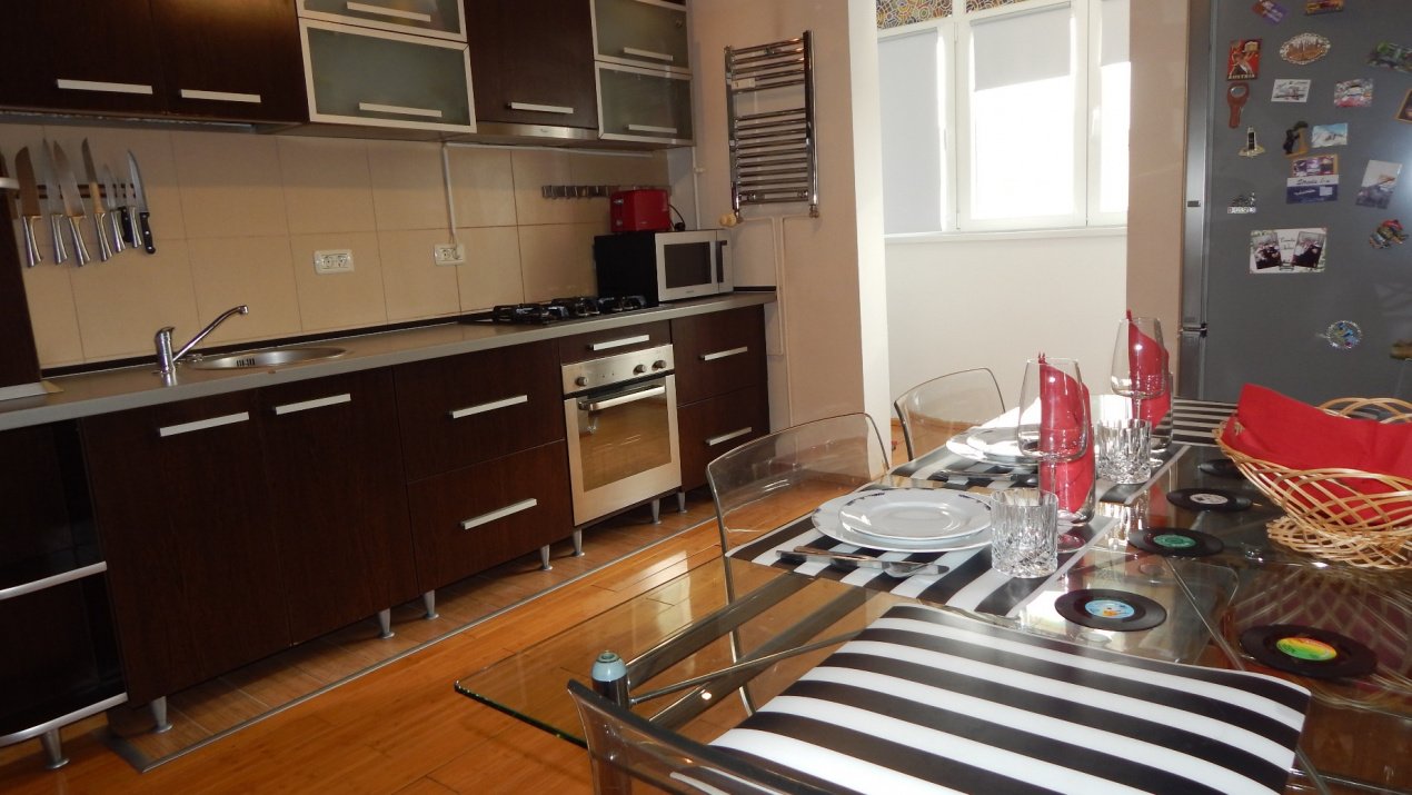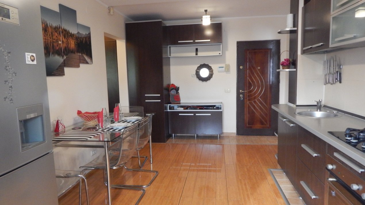 Apartamentul se preda cu toate cele necesare pentru mutare imediata: mobilier modern, TV cu acces internet si cablu, plita, cuptor, microunde, prajitor paine, masina de spalat, combina frigorifica, aspirator, fier si masa de calcat, aer conditionat, sistem de alarma, vesela si multe altele.
