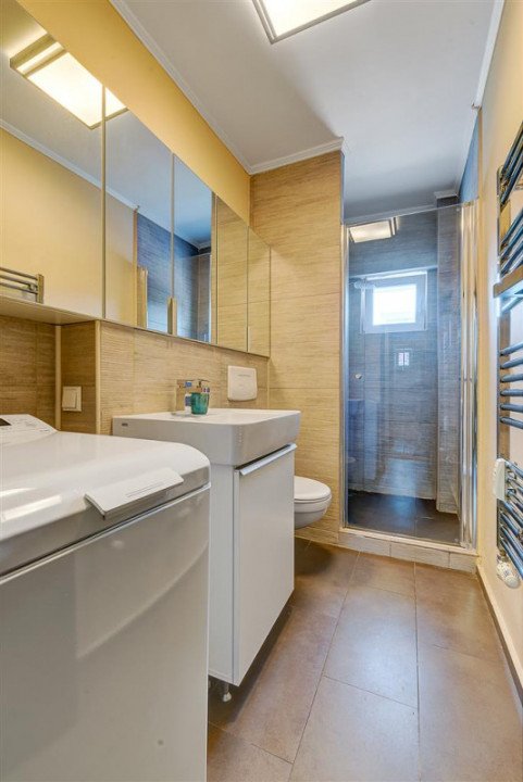 Baia este amenajata si echipata cu toate obiectele sanitare si masina de spalat rufe.