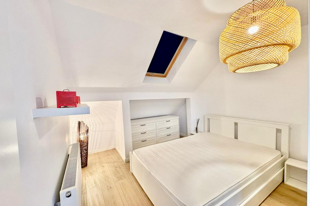 Amplasat convenabil pe o strada linistita, la cateva minute de mers pe jos de statia de metrou, piata si parc. Apartament confortabil, situat la mansarda, potrivit pentru un cuplu sau o persoana. Imobil de 3 etaje din 2018, curat si bine intretinut, cu access securizat. Interior vesel si luminos, recent igienizat, echipat cu centrala proprie.