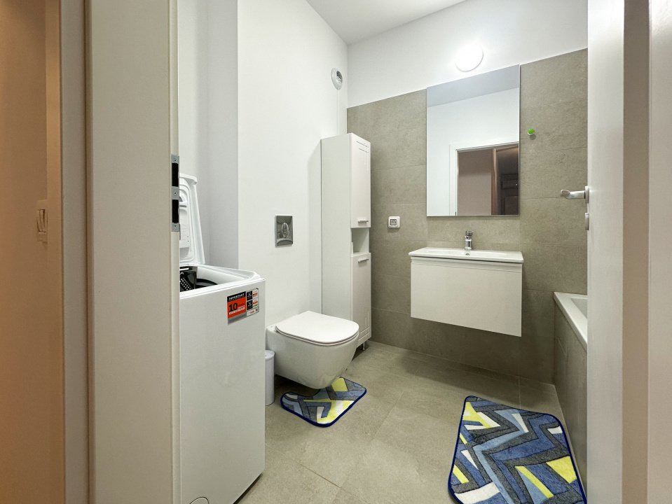 Rezumat: Apartament 2 camere, 69mp, etaj 8, vedere panoramică, open space cu bucătărie, complet mobilat și utilat, 2 AC, Smart TV LG 126cm, rulouri exterioare (electrice la living), bloc 2024 cu 2 lifturi Schindler, loc parcare subteran inclus, boxă depozitare 6-7mp, zonă verde și liniștită, Parc Morărilor la 8 min, Arena Națională la 12 min, Profi la parter, Lidl la 100m, metrou la 9 min