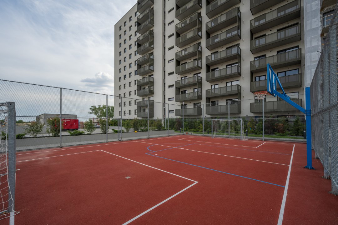 Imobilul este dotat cu 2 lifturi, acces securizat, modern executat si decorat, dotat cu sistem de incalzire inclusiv pe casa scarii. Imobilul are spatii de recreere, alei amenajate, spatii verzi, teren de baschet, parcari pentru vizitatori.