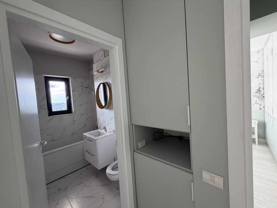 Daca lucrezi de acasa, in dormitor ai si un birou amenajat. Inclusiv patul tapitat are 4 sertare de depozitare. A fost pastrata o paleta de culori neutra, care sa nu incarce spatiul si sa iti ofere liniste cand ajungi acasa.