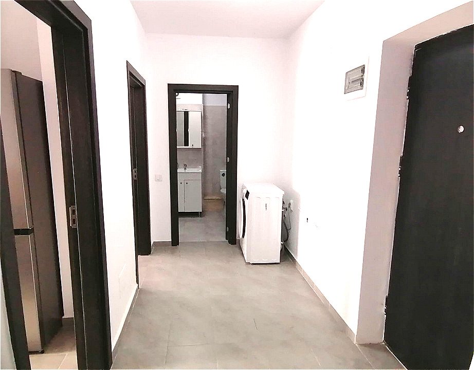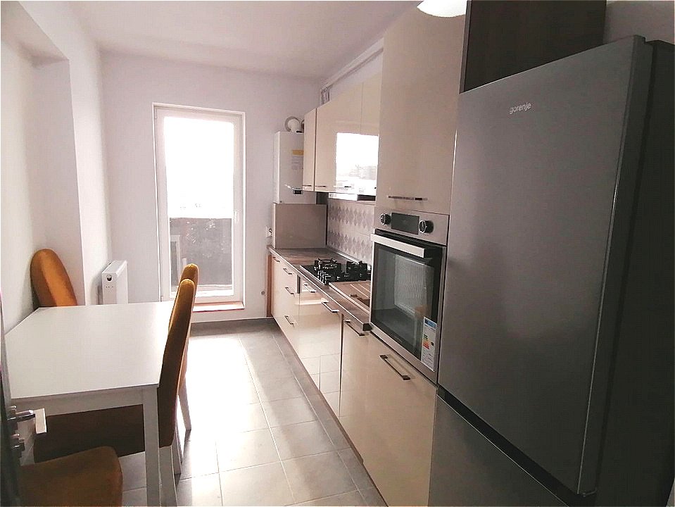 Bucataria este moderna, fiind dotata cu plita pe gaz, cuptor electric, hota, combina frigorifica, masa si 4 scaune. Pe hol este instalata masina de spalat haine.