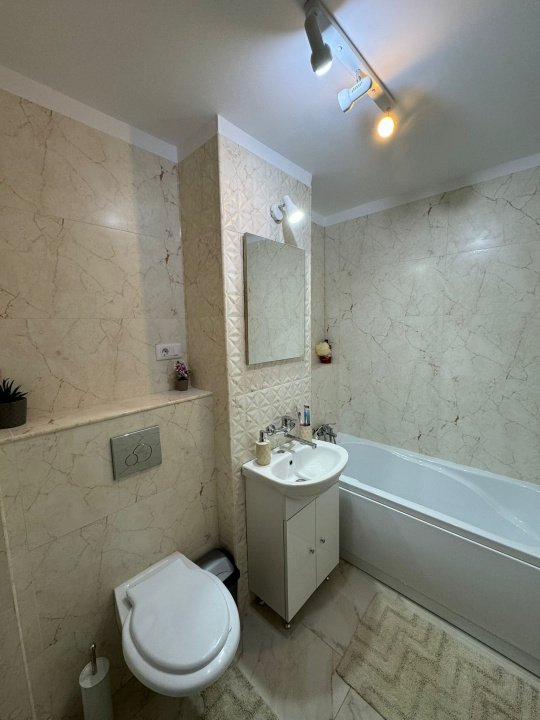 Baie modernă, echipată cu toate facilitățile necesare pentru confortul zilnic.