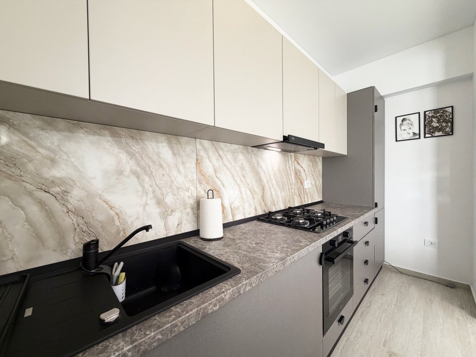 Apartamentul este amenajat modern și dispune de toate electrocasnicele necesare pentru un confort sporit: mobilier nou, bucătărie complet utilată, baie modernă și spații bine organizate.