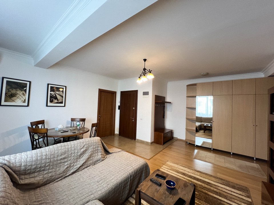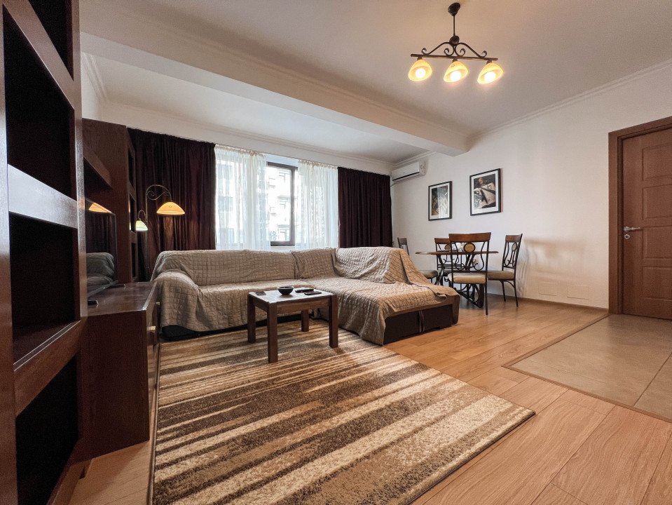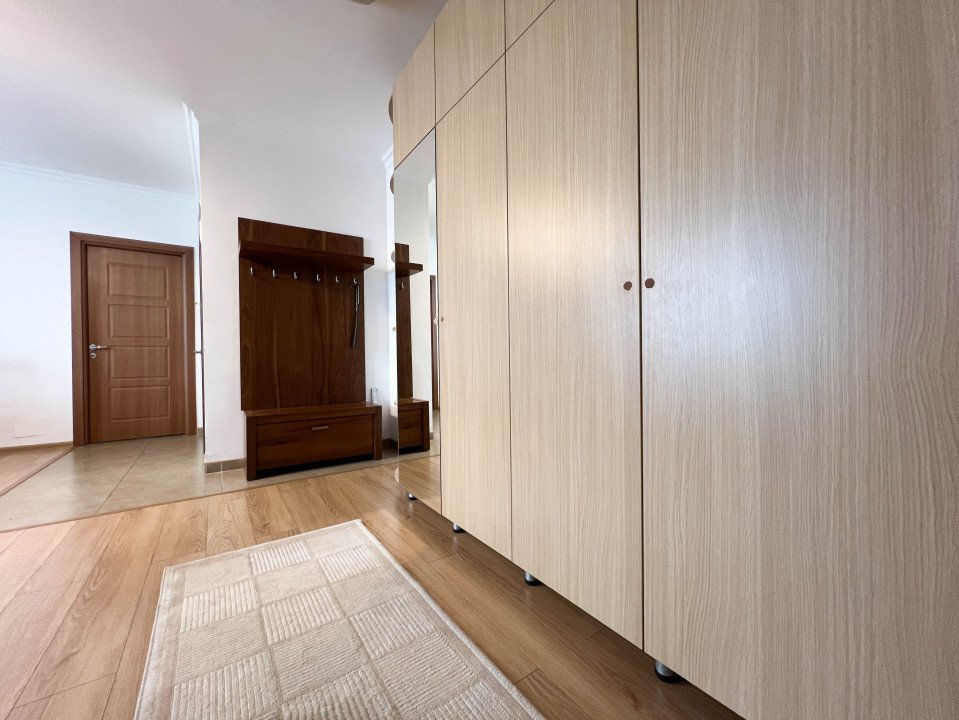 Interiorul apartamentului impresionează prin designul său contemporan, cu mobilier de înaltă calitate și culori neutre pentru a crea un mediu elegant și relaxant.