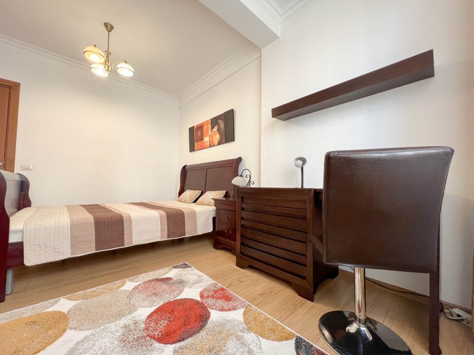 Dormitor : Dormitorul are un pat matrimonial confortabil și dulapuri spațioase, iar balconul privat este locul perfect pentru momente de relaxare și contemplare.