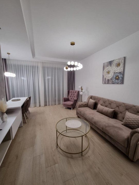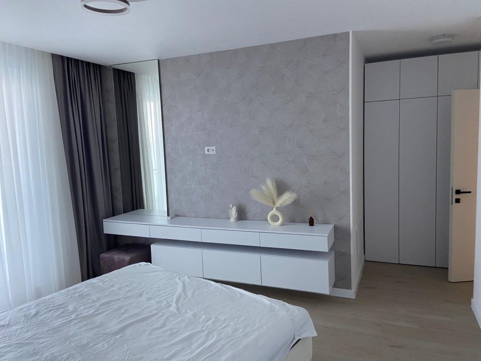 Apartamentul este mobilat si utilat complet modern cu plita cuptor hota combina frigorifica masina de spalat vase smart tv + SISTEM SMART HOME.