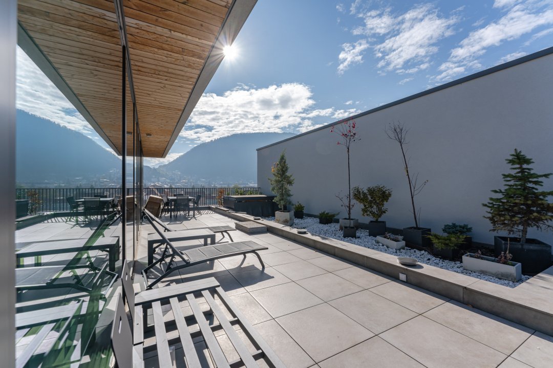 Acest penthouse, dispus pe două niveluri, impresionează prin lumină naturală abundentă, finisaje de top, două terase generoase, jacuzzi privat și o panoramă superbă asupra Muntelui Tâmpa și semnului “Brașov”.