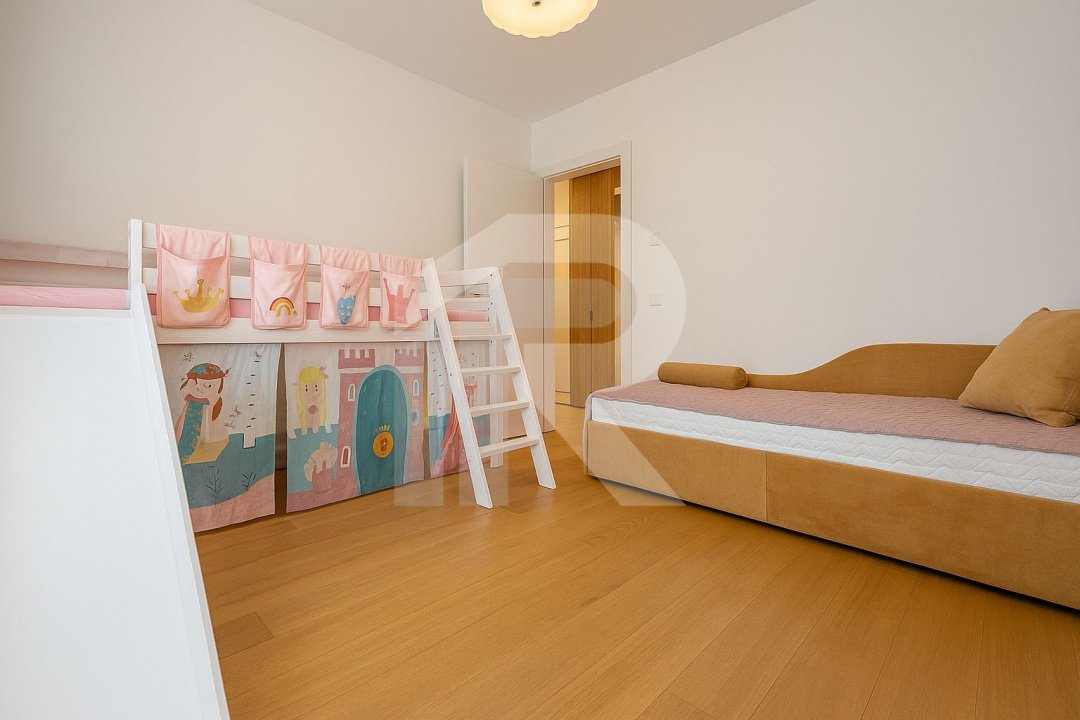 Acest apartament spațios de 3 camere, situat într-una dintre cele mai verzi și liniștite zone ale capitalei – Cartierul Greenfield Residence, îmbină perfect confortul urban cu apropierea de natură.Proprietatea este amplasată într-un bloc modern cu 9 etaje, aflat chiar la marginea pădurii, beneficiind de o priveliște superbă și intimitate deplină.Apartamentul dispune de un balcon închis cu sticlă securizată, ideal pentru relaxare pe tot parcursul anului, și oferă finisaje de calitate superioară, mobilier modern și electrocasnice premium.