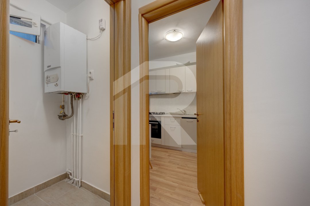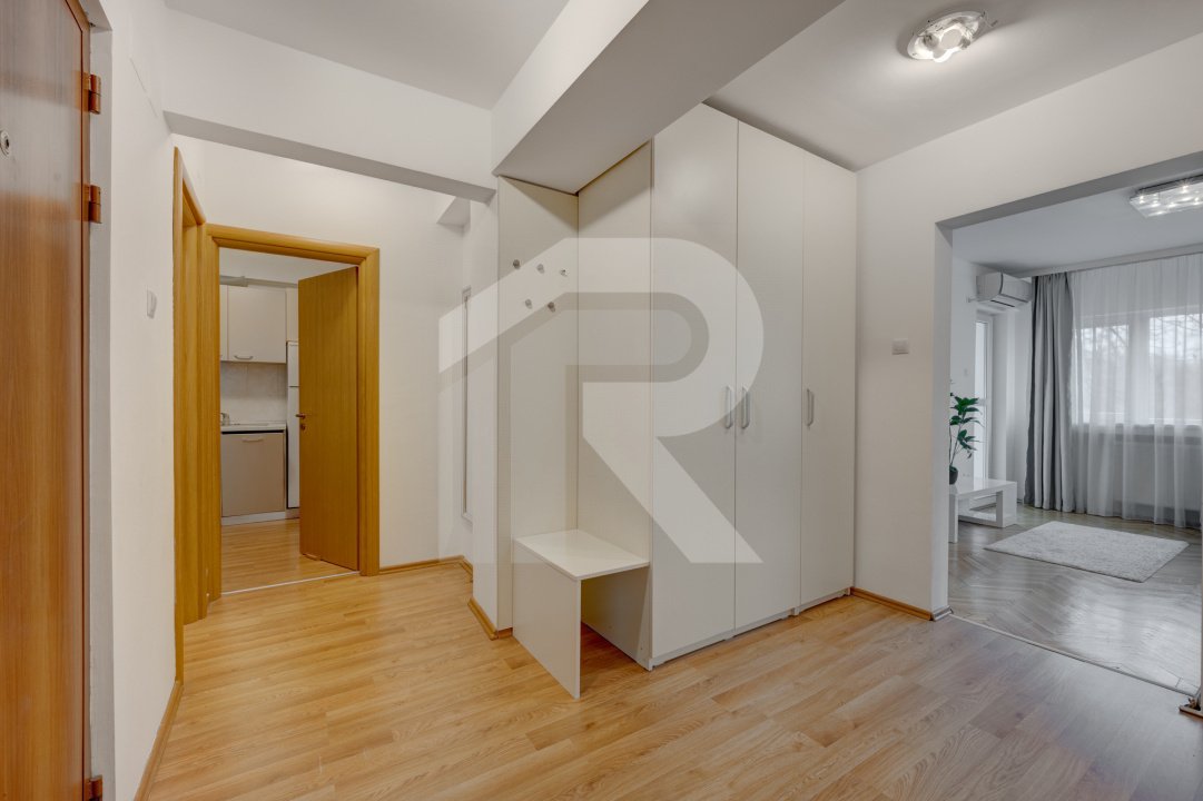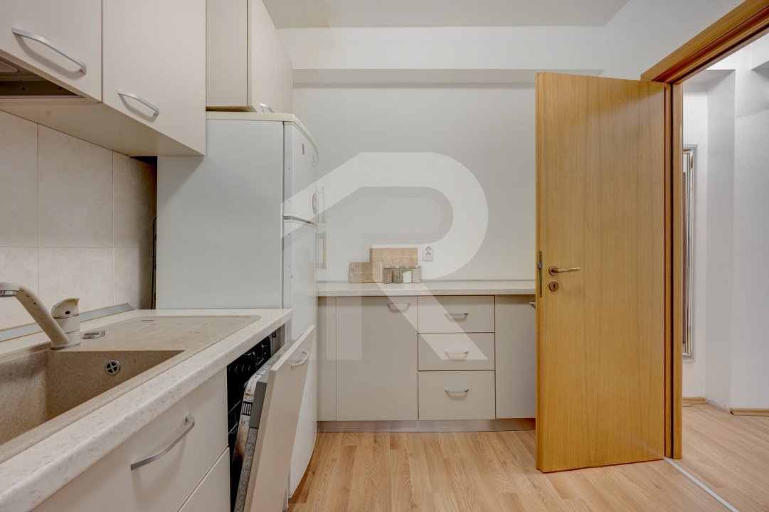 The apartment is fully furnished and fully equipped, ready for immediate move-in: dishwasher, washing machine and dryer – true comfort for a modern lifestyle. The space is bright, modernly arranged, with an airy and welcoming atmosphere. The windows facing the back of the building ensure peace and privacy, while the balcony nicely complements the relaxation area – the perfect spot for your morning coffee or a moment to unwind after a busy day.