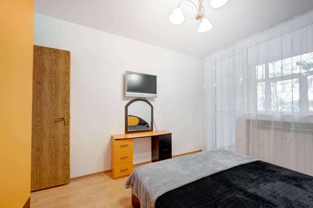 Compartimentarea este semidecomandata, are 1 grup sanitar, 1 balcon, bucatarie generoasa, living si doua dormitoare. Este ideal pentru o familie cu 1 copil, mai ales ca in apropiere este Parcul Moghioros, locuri de joaca pentru copii, centre de activitati sportive, sunt scoli generale, gradinite de stat.