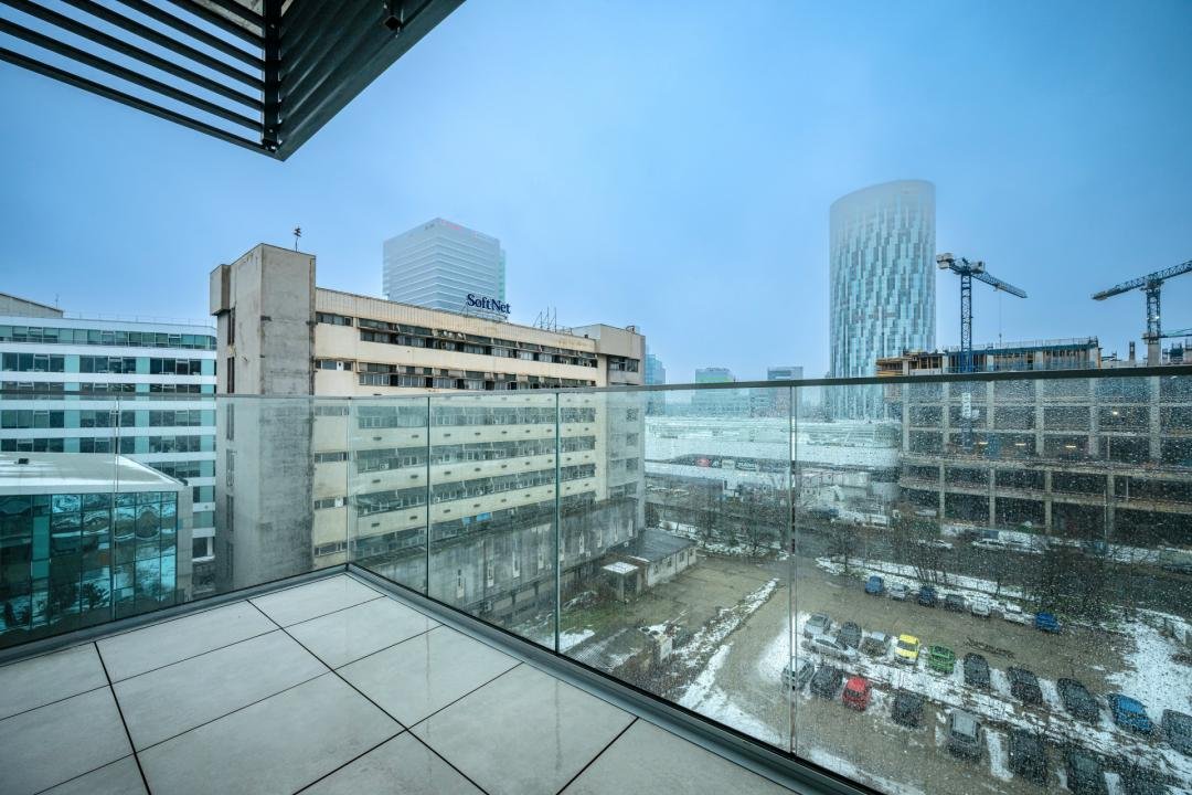 Apartamentul este situat la etajul 6 din 25 și are o suprafață totală de 80 mp, din care 64mp suprafață utilă și 16mp suprafața generoasă a terasei.