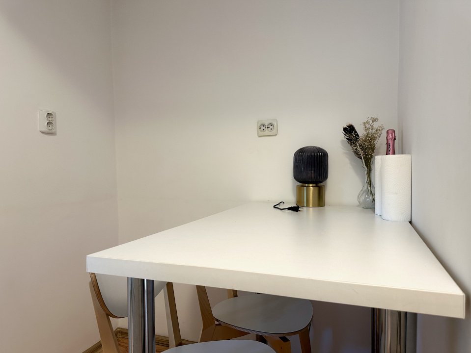 Pentru cuplurile care lucrează de acasă, acest apartament devine un partener ideal: biroul din living și cel din dormitor creează spații dedicate concentrării, unde munca se împletește armonios cu viața personală. Fiecare își poate amenaja colțul său de productivitate, fără compromisuri. Centrala proprie înseamnă confort termic exact când aveți nevoie, la temperatura dorită, fără dependență de program sau de sezon – un plus esențial pentru zilele lungi petrecute acasă.