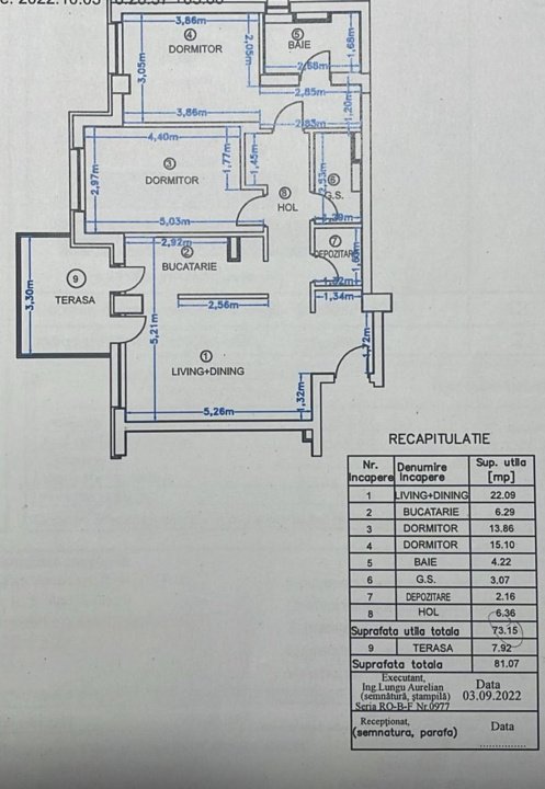 Apartamentul este amplasat la etajul 5, beneficiază de o orientare vestică, oferind lumină naturală și apusuri spectaculoase, și are o suprafață utilă de 73 mp, cu o suprafață totală de 81 mp, incluzând un balcon generos de 8 mp.