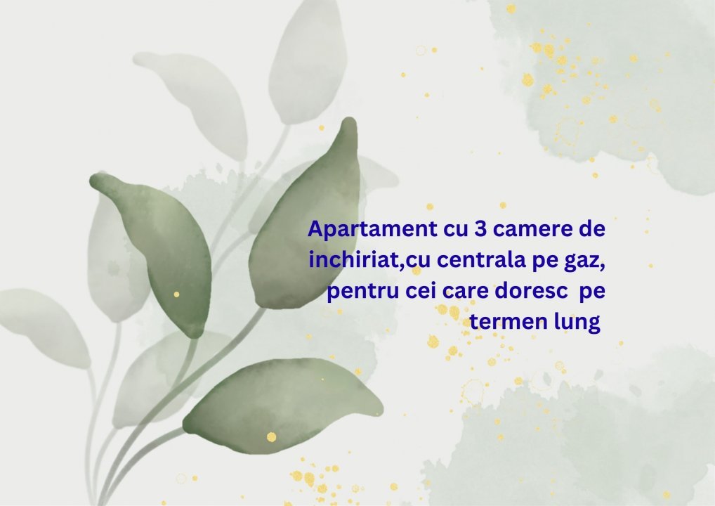 Va ofer spre inchiriere un apartament cu 3 camere, situat in zona EDEN- INEL I, cu centrala pe gaz. Apartament mobilat si utilat situat la etajul 1, intr-un bloc cu 4 niveluri, cu vedere pe spate amplasat retras din zona de trafic, zgomot si poluare urbana. Este dotat cu frigider, aragaz, masina de spalat rufe, tv, bine intretinut, racolos pe tipul verii.