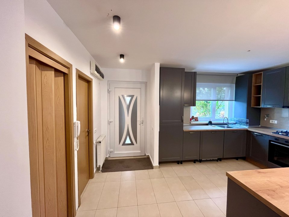 Kronhouse Real Estate va propune spre inchiriere un apartament 4 camere, la casa in Complexul Green Valley, in apropierea Lacului Noua si la cateva minute de gradina zoologica. Locuinta are o suprafata aproximativa de 135 mp, cu 3 bai si o gradina tip terasa de aproximativ 30 mp. Imobilul este structurat astfel :P+1+M: La parter avem: bucataria open-space cu livingul, wc de serviciu, debara si gradina tip terasa. La nivelul 1 avem: 2 dormitoare, dressing si baie cu cada. La mansarda avem: dormitor, dressing si baie cu dus. Apartamentul este mobilat si utilat complet. Nu se accepta cu animale de companie in locatie, fara studenti. Proprietatea dispune de 1 loc de parcare in cadrul complexului. Utilitatile nu sunt incluse in chirie. La chiria afisata se adauga T.V.A de 21%. Conditii de inchiriere: o luna in avans, o garantie de 900 EURO si comisionul standard al agentiei de 50%. Pentru detalii suplimentare, nu ezitati sa ne contactati. 0726 684 207.