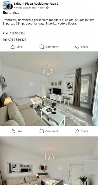 Garsoniera Exigent Plaza Residence Faza 3