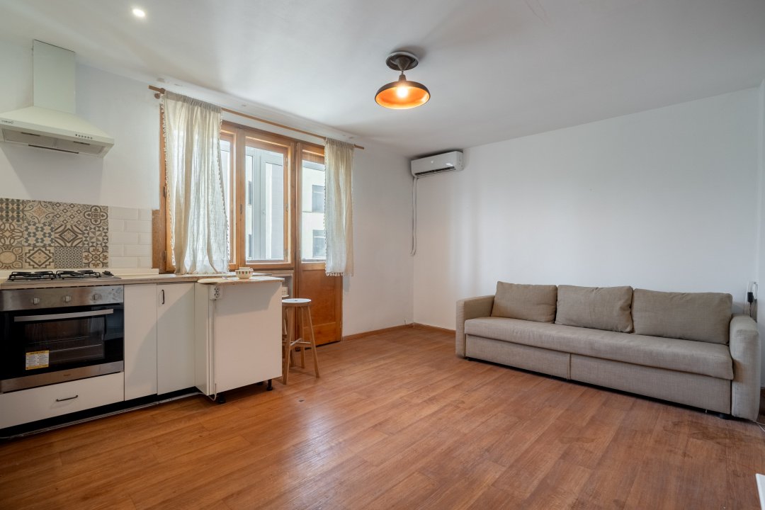 O mica bijuterie de 3 etaje a ramas neatinsa de vreme in inima centrului financiar al capitalei. La doi pasi de Piata Victoriei, pe o strada cu nume de doctor, ca in Cotroceni si cu acelasi aer interbelic, poti avea un loc cald si primitor, pentru un start cu dreptul in orasul care nu doarme! Ai tot ce iti trebuie, poate doar sa schimbi canapeaua cu un pat confortabil sau sa adaugi un pat, ca loc este destul! Te vei minuna in fiecare zi, urcand scarile, de ceea ce stiau sa faca mesterii interbelici si de cat de durabile erau materialele folosite atunci: marmura, mozaic, lemn masiv. Scara in sine este un mic muzeu. Despre zona si despre cat de repede ajungi oriunde ai nevoie, nu povestim. Hai acasa!