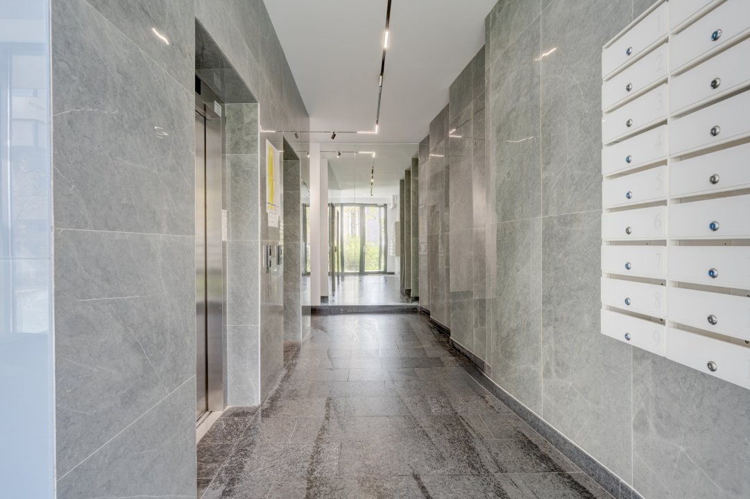 Imobilul are structura din cadre de beton si peretii interiori si exteriori din caramida, termoizolat exterior, cu regim de inaltime p+8 si beneficiaza de 2 lifturi moderne. Parterul imobilului este destinat spatiilor comerciale. Aleea de acces in imobil este amenajata cu spatii verzi iar accesul este securizat.