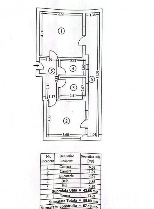 Va prezint spre vânzare un apartament cu 2 camere, decomandat, situat la etajul 1 intr-un imobil cu regim mic de înălțime , P+2+M, edificat în 2010. Apartamentul , in suprafata total utila de 55,89 mp , este excelent compartimentat și dispune de un balcon generos, de 13,24 mp, ce poate servi atat ca spațiu de relaxare cât și ca spațiu de depozitare .