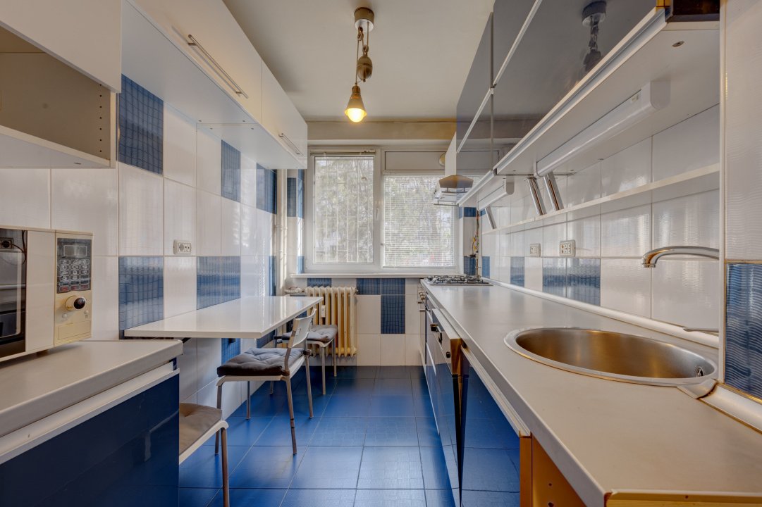 Bucataria este complet mobilata si utilata, echipata cu masina de spalat vase, plita, cuptor, hota si frigider. Dormitorul este mobilat complet.