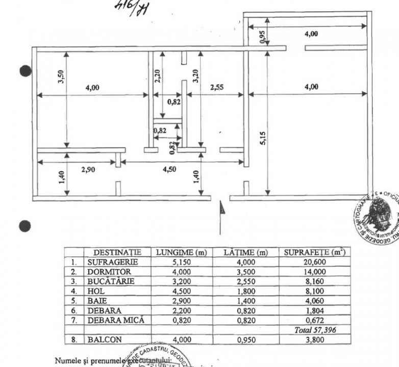• Suprafață TOTALĂ: 62 mp, Balcon 4 MP