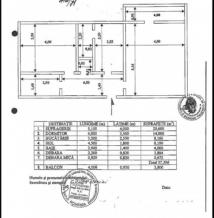 • Suprafață TOTALĂ: 62 mp, Balcon 4 MP