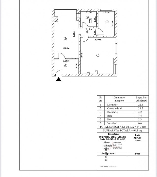 • Hol de trecere ce face legătura între zonele principale ale apartamentului