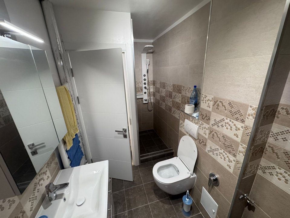 Baia este complet utilată, cu vas WC cu funcție de bideu, duș separat și spațiu dedicat mașinii de spălat.