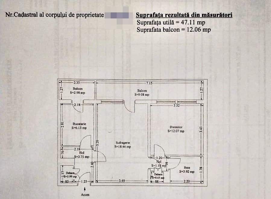 Apartamentul se afla la etajul 1 din 8, intr-un bloc solid, cu lift, avand o compartimentare semidecomandata, cu o suprafata totala de 59,17 mp (47 mp utili + balcon de 12,06 mp). Este complet mobilat / utilat, dispunand de centrala proprie pe gaze si doua aparate de aer conditionat.