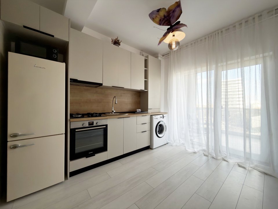 Locuința are o suprafață utilă de 44,7 mp, la care se adaugă un balcon generos de 10 mp, ideal pentru relaxare. Apartamentul este mobilat și utilat complet, fiind pregătit pentru mutare imediată sau pentru exploatare în regim hotelier.