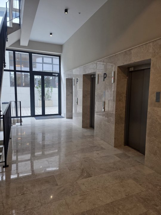 Locuința se vinde amenajată la cheie, cu finisaje de calitate și dotări moderne: fațadă ventilată cu termosistem din vată minerală bazaltică, balcon cu balustrade din sticlă securizată, 3 lifturi rapide Schindler pe fiecare scară, ușă metalică antiefracție, uși interioare din MDF și tâmplărie PVC VEKA 70, cu profil german.