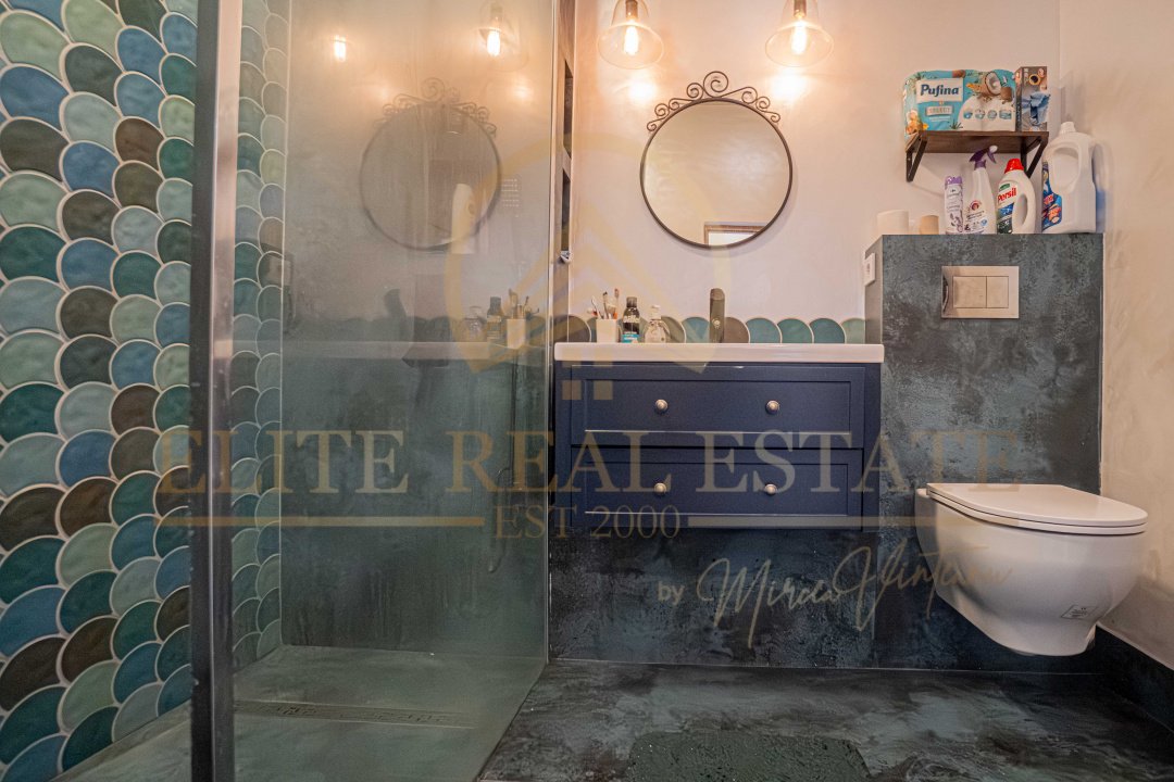 Finisaje premium: faianță din piatră naturală, corpuri de iluminat elegante