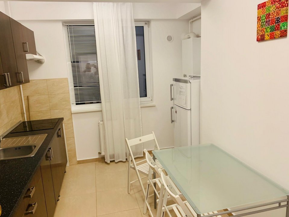 Situat la etajul 5, spațiul oferă intimitate și panorame spectaculoase. Bucătăria închisă, perfect delimitată, aduce funcționalitate, iar mobilierul și dotările moderne creează un ambient primitor. Centrala pe gaz asigură independență și eficiență în orice sezon.