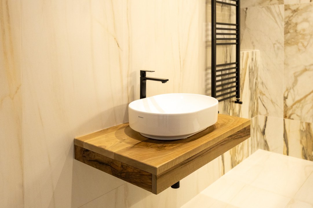 ✨ Baie complet placată cu ceramică Marazzi, un simbol al luxului discret.