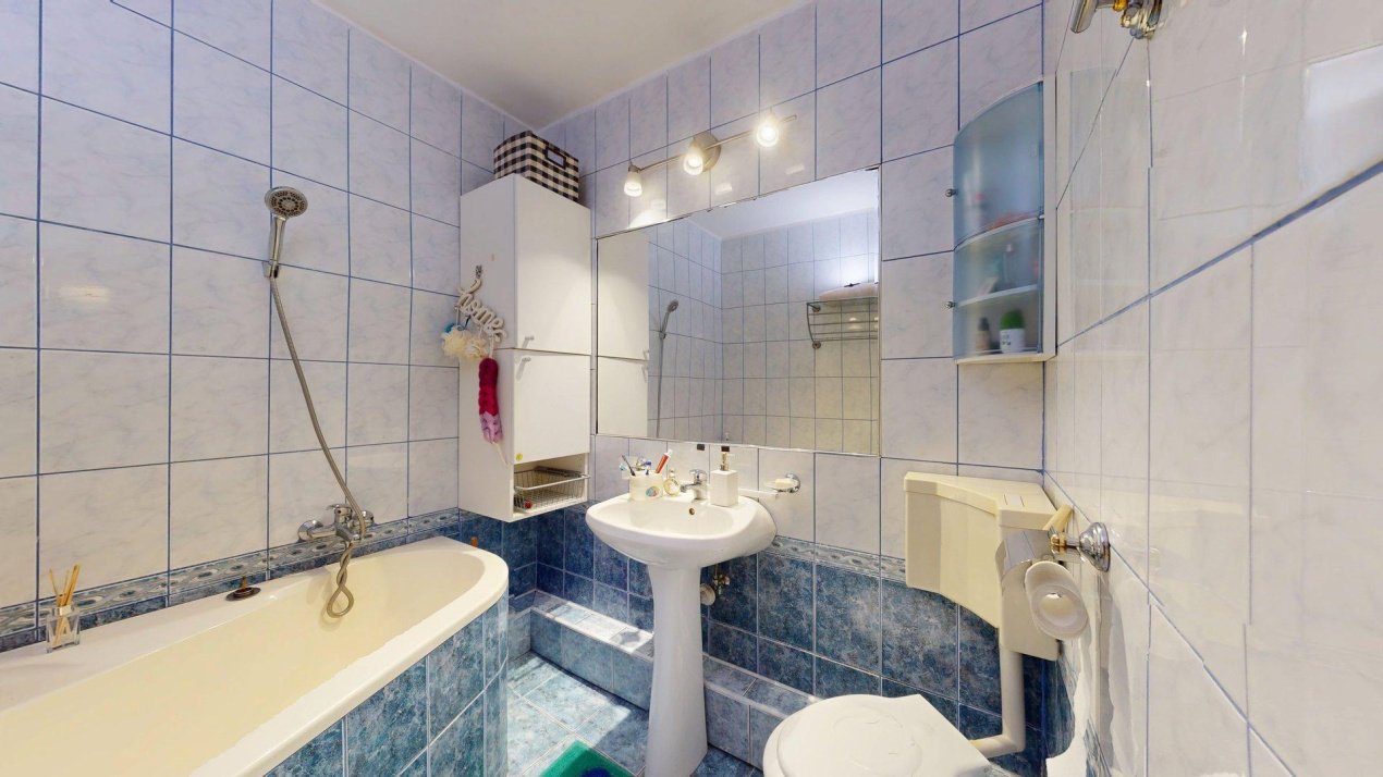 2 Băi: Una dotată cu cadă (pentru momente de răsfăț) și a doua cu cabină de duș (practică pentru diminețile grăbite).