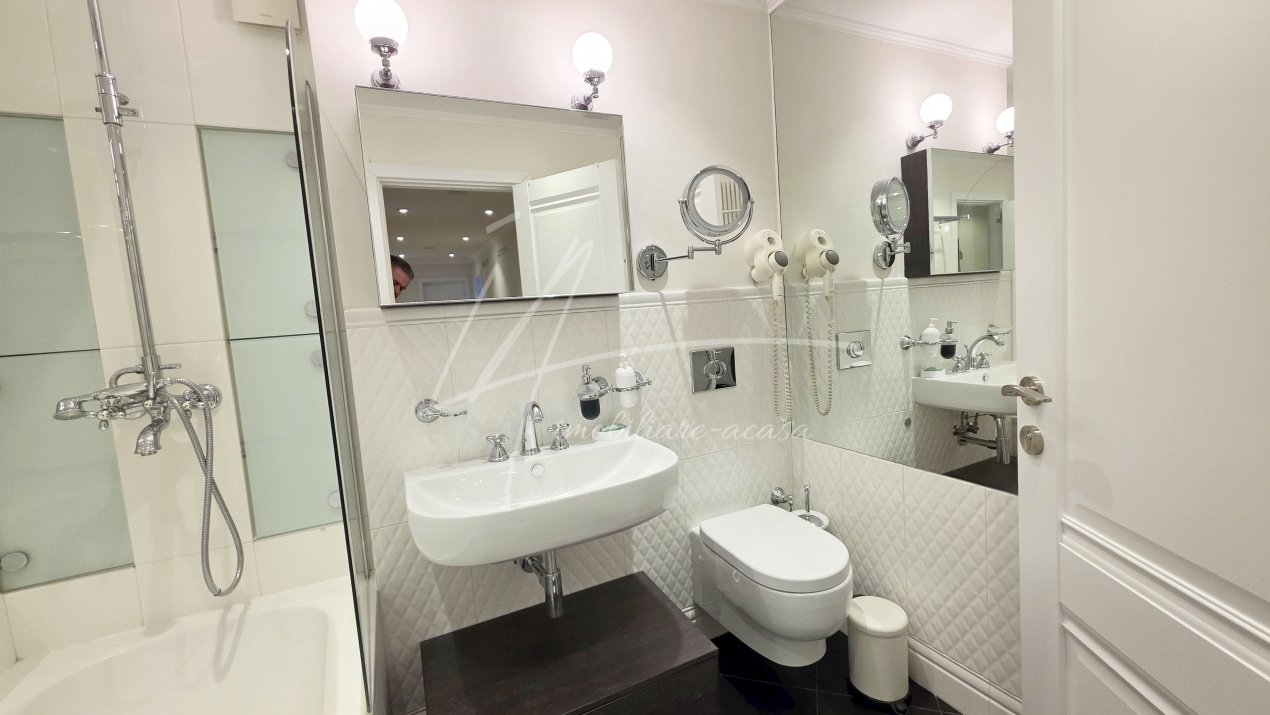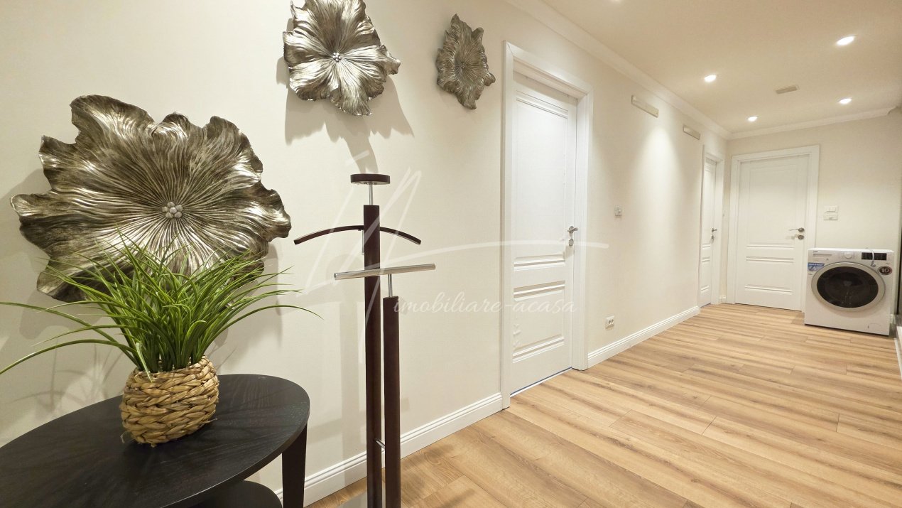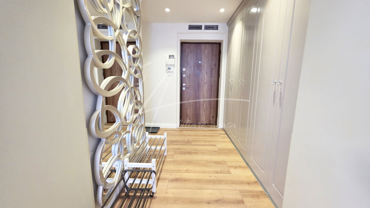 Două dormitoare spatioase si doua bai moderne completeaza aceasta oaza de liniste si eleganta. Holul imens cu dulapuri tip dressing iti asigura spatiu de depozitare si organizare perfecta, in timp ce bucataria mobilata si utilata complet te inspira sa creezi cele mai rafinate preparate culinare.