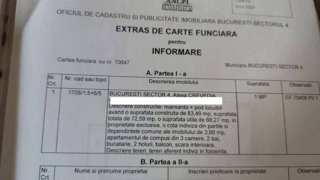Se oferă spre vânzare un apartament de 3 camere, decomandat, dispus pe 2 niveluri, situat la mansardă (construită în 2010) deasupra unui imobil solid din 1975 (4 etaje), poziționat pe Aleea Crevedia.