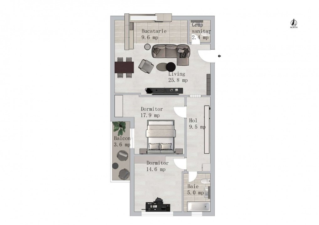 Apartament Spatios de 3 Camere - 90mp | Green Garden