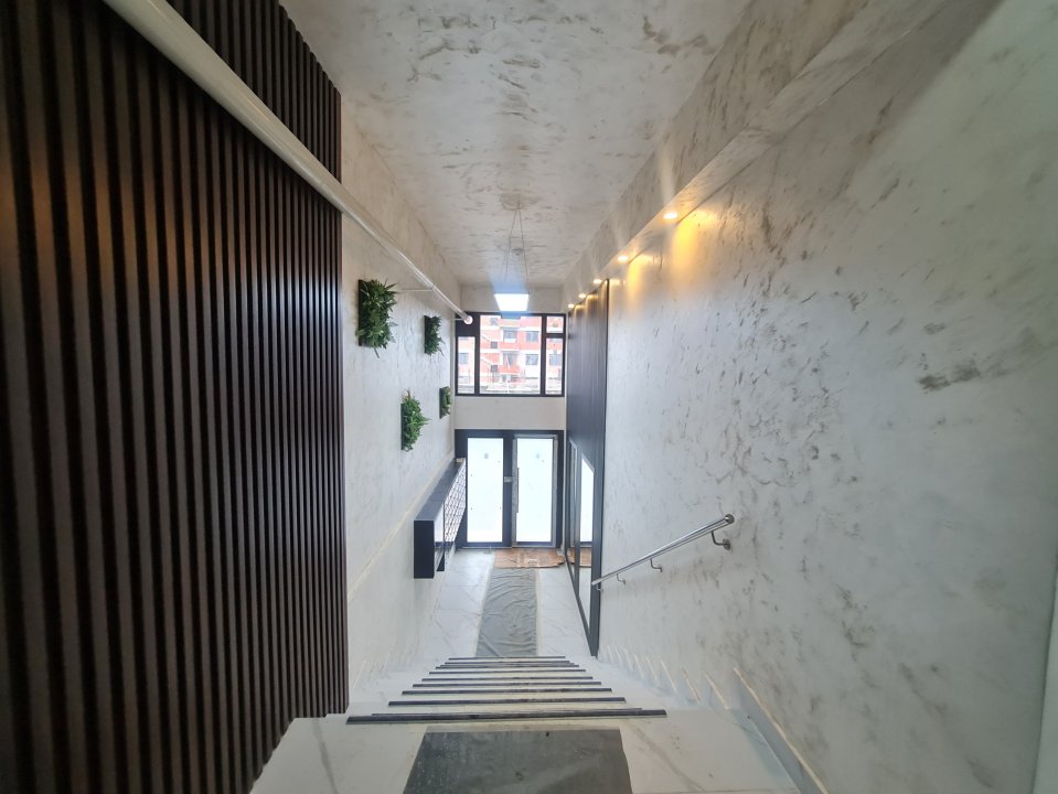 Blocul dotat cu lift Shindler, zona amenajata de lobby, balustrade metalice si illuminat cu automatizare si senzori de miscare pe holuri si casa scarii.